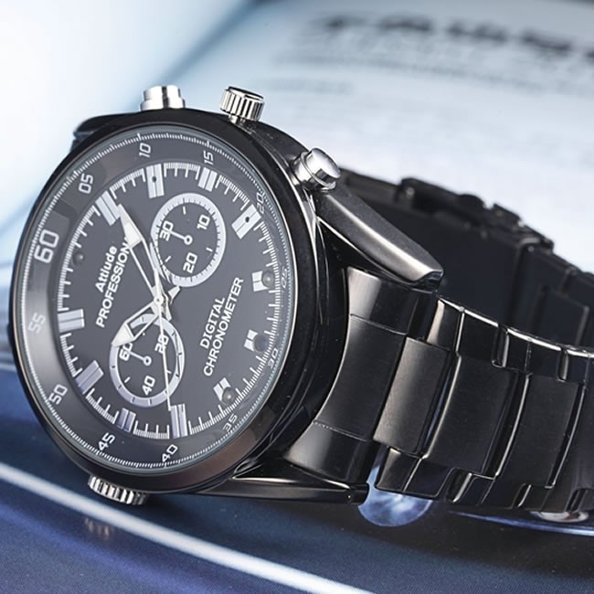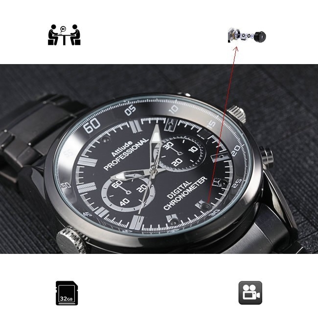 Acest ceas care nu atrage cu nimic atenția și realizează înregistrări audio și video la o calitate impresionantă. Într-un cuvânt o microcameră spion portabilă mereu la îndemână.