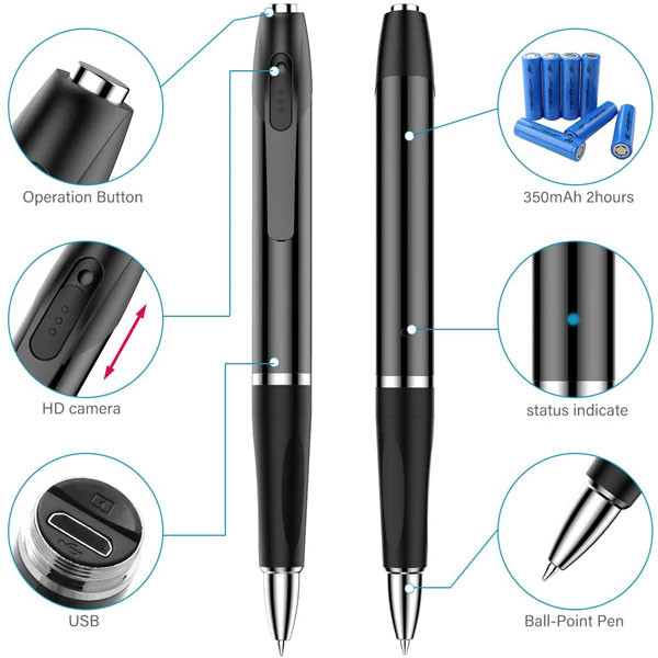 Camera spion incorporata in pix are o rezolutie de 1920*1080. Contine un slot micro Sd ce suport un card de memorie de maxim 64Gb, unde puteti stoca toate inregistrarile si fotografiile facute cu pixul.