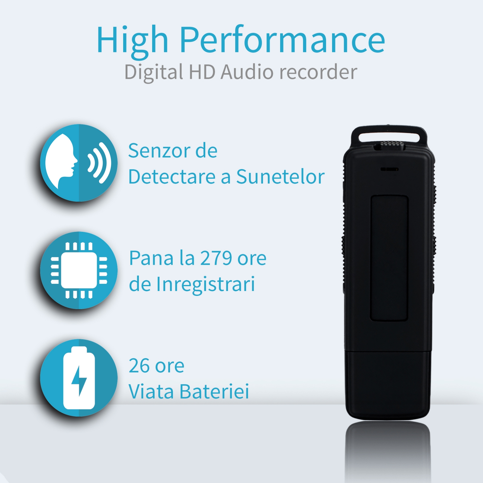 DOAR dacă sunt detectate sunete în raza lui de acțiune. Pe memoria lui se va înregistra numai atunci când se vorbește, perioadele de liniște fiind