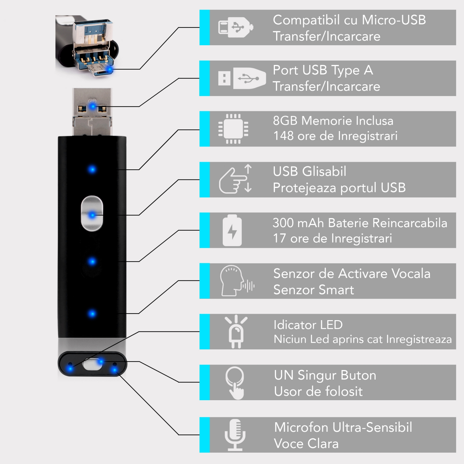 | Rază microfon | max 8 metri |